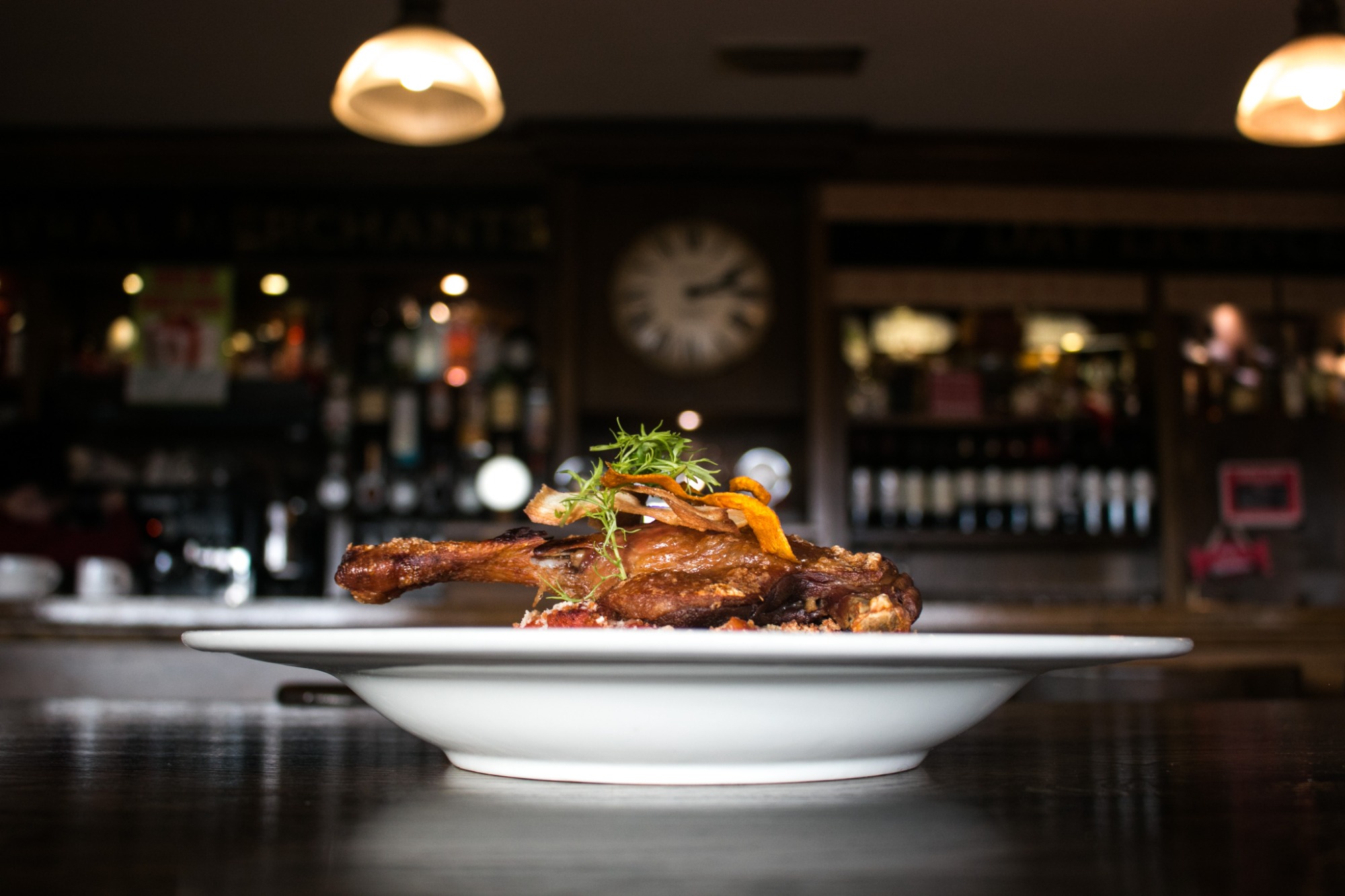 serwujemy w sosie z wina i warzyw, z warzywami pikantnymi i zielonym puree